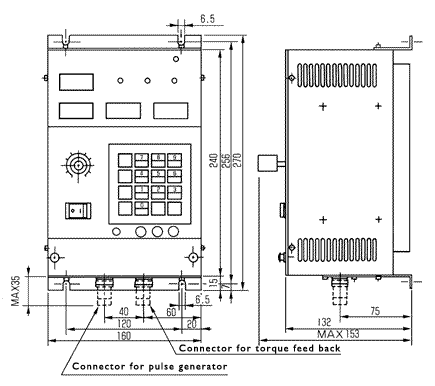 | The PCA-110A controls the torque of electromagnetic powder clutches/brakes, maintaining constant tension during winding/unwinding despite diameter variation. The diameter of the material roll is automatically calculated using a signal from a proximity switch attached to the roll shaft of the material and a pulse encoder attached to the pinch roll measuring from the midpoint of the material. The torque of the electromagnetic powder clutch/brake is varied according to the increase/decrease of the material so that recalibration is not required even if the material is changed. |